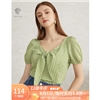 范思蓝恩 2020夏季新款复古泡泡袖雪纺衫女设计感小众胸前绑带上衣 青格纹 L