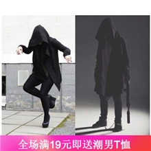 琛倪欧美暗黑巫师连帽暗黑系男装带帽斗篷中长款风衣外套披风长袍外套百搭衣服时尚潮流 黑色 XL
