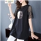 木棉林高端大码女装2020新款夏装胖妹妹mm减龄镂空拼接洋气印花中长款宽松显瘦T恤女L202797 黑色 2XL建议140-160斤