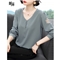 【精选好货】晞薇雪纺上衣2020新款春夏装时尚简约打底衫中年妈妈大码长袖T恤女洋气小衫遮肚宽松 浅灰蓝 请拍正确尺码