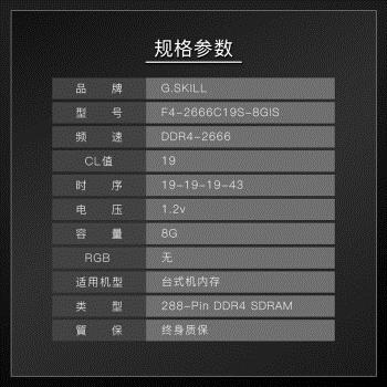 芝奇(G.SKILL)8GB DDR4 2666频率 台式机内存条 Aegis/品质铸造品牌 |