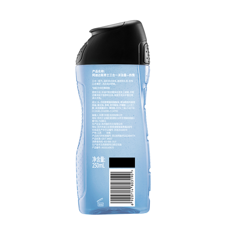 阿迪达斯男士三合一沐浴露薄荷香250ml |