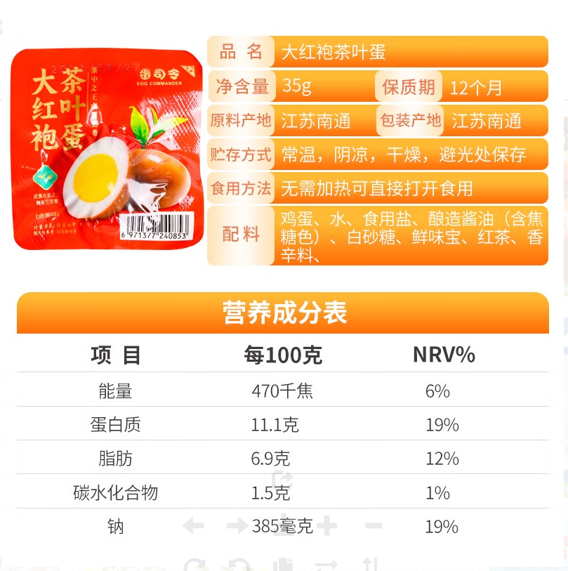 蛋司令大红袍茶叶蛋35g |