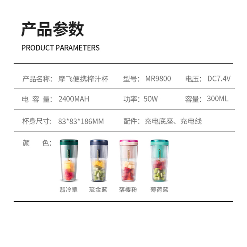 摩飞新品 榨汁杯家用水果迷你小型果汁杯电动便携式炸果汁机无线榨汁机【PCTG/薄荷蓝】 |