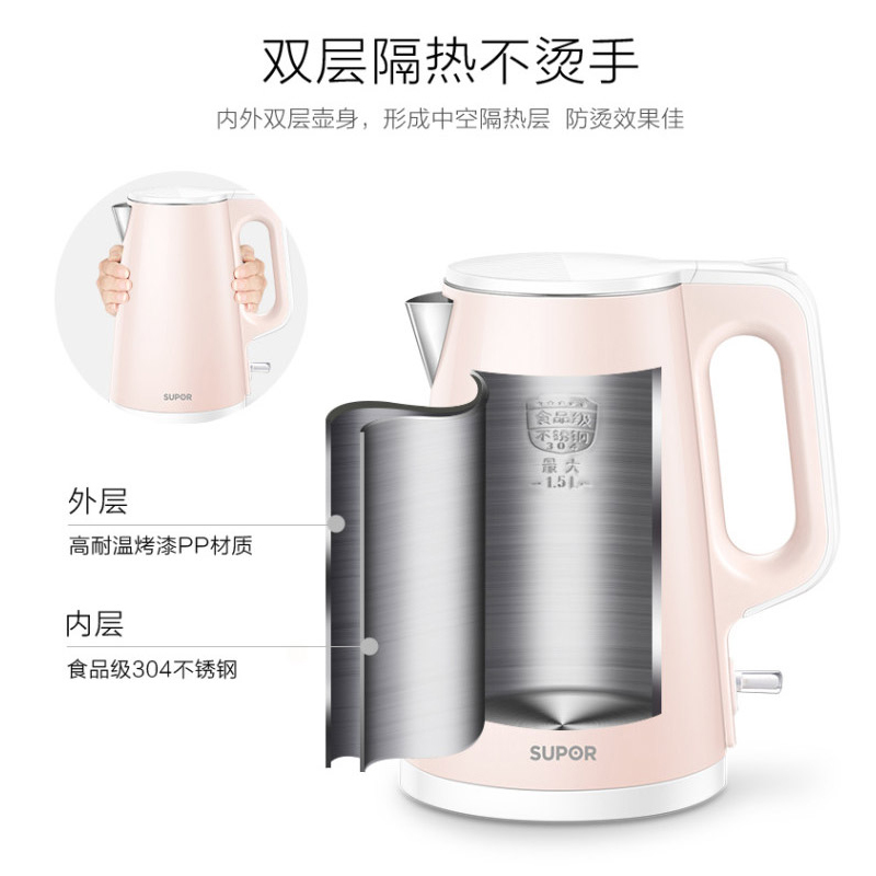 SW-15S01A电热水壶1.5L【304不锈钢/粉色】 |