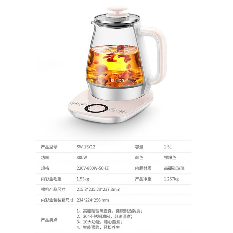 SW-15Y12养生壶1.5升【高硼硅玻璃/粉色】 |