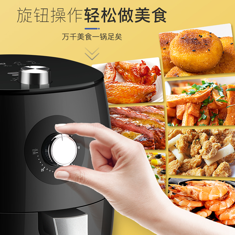 山本空气炸锅家用3.5升大容量无油烟电炸锅S2101【PP/黑色】 |