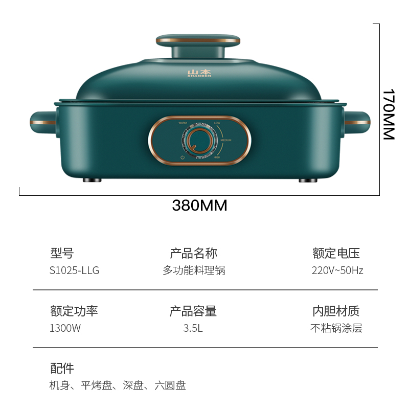 山本多功能料理锅绿色【不粘涂层/绿色】 |