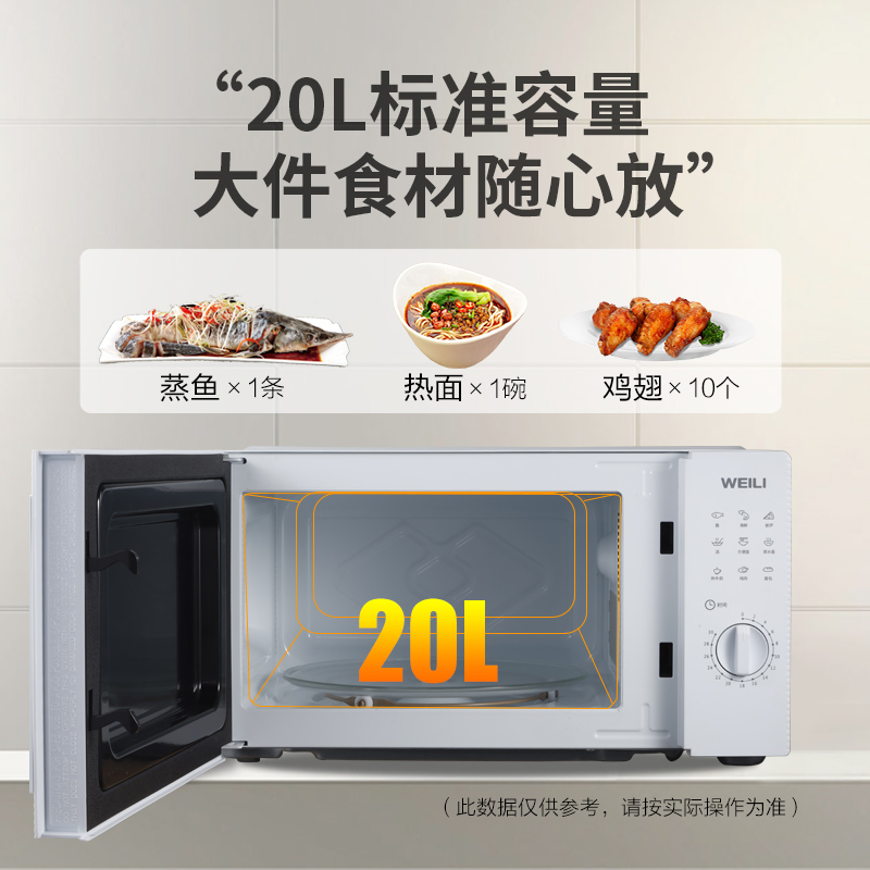 威力(WEILI)20L容量 转盘加热 时间旋钮控制 转盘加热微波炉 D20MXP02-c60【微波炉/白色】 |