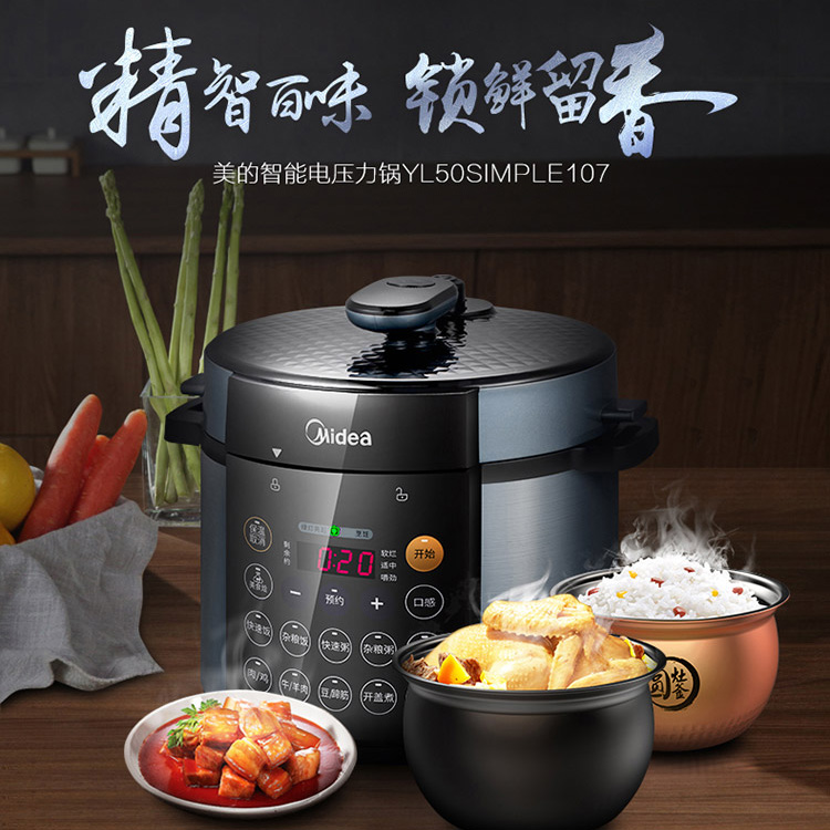 美的(Midea)电压力锅5升双胆智能预约双内胆【铝合金内胆/银色】 |