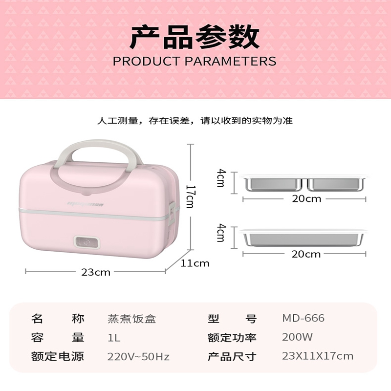 蒙得MD-666电热饭盒304不锈钢食品级不锈钢内胆精致【不锈钢/粉色】 |