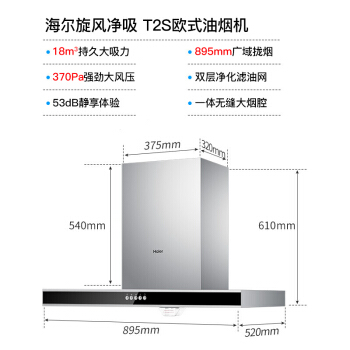 海尔(Haier)抽油烟机 欧式 家用 大吸力 一级能效 吸油烟机 CXW-200-E900T2S |