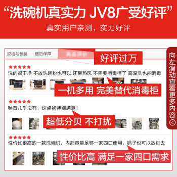 美的(Midea)8套 嵌入式 家用洗碗机 热风烘干 WIFI全智能 一键自清洁 20min超快洗 全自动刷碗机JV8 |