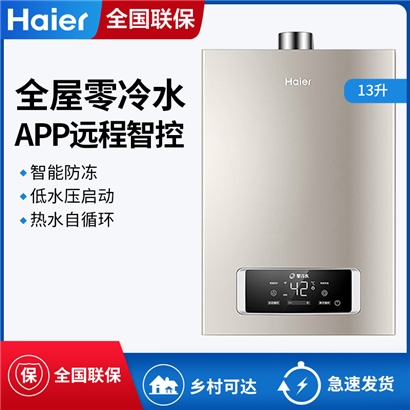 Haier/海尔 JSQ25-13R3BWU1 零冷水13升WIFI水气双调恒温高端家用强排式燃气热水器【不锈钢/金色】 |