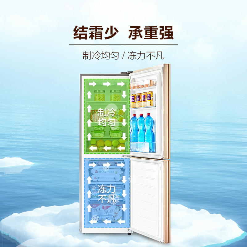Midea/美的 BCD-190CM(E) 双开门两门小冰箱冷藏冷冻家用电冰箱【冰箱/金色】 |