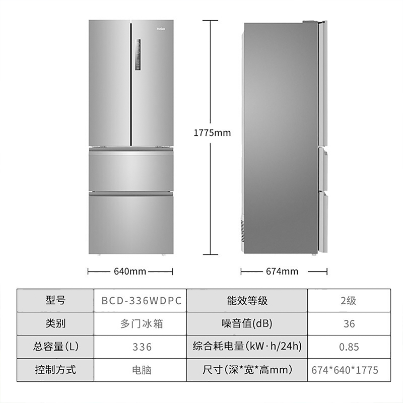 海尔BCD-336WDPC 多门四门家用电冰箱风冷无霜大容量新款节能静音【炫金钣金/月光银】 |