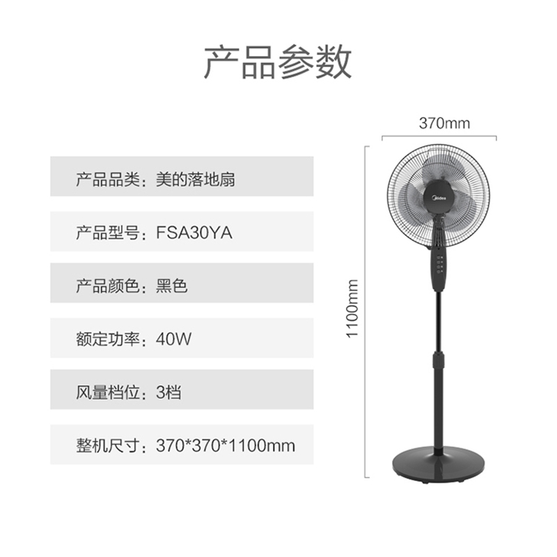 美的(Midea)电风扇家用风扇立式电扇宿舍【PP风叶/黑色】 |