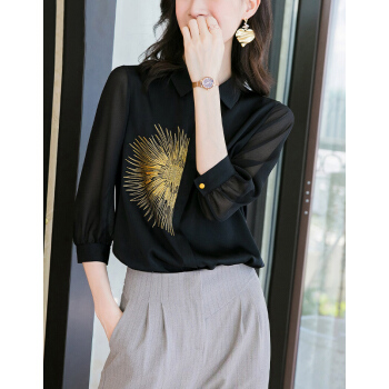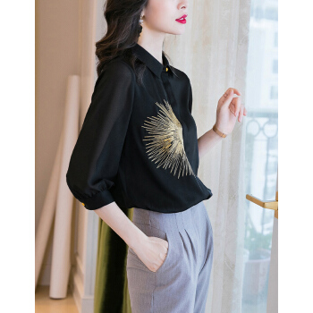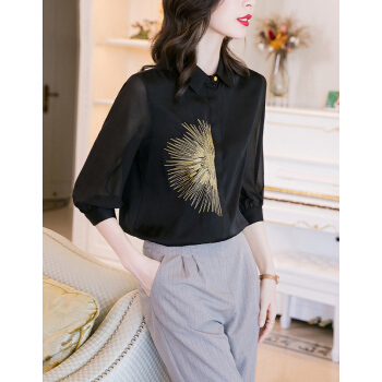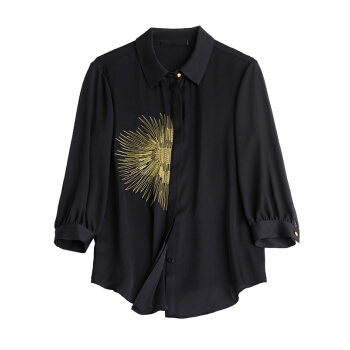 南极人 七分袖衬衫女2020夏季新款女装韩版时尚绣花宽松衬衣气质优雅POLO领上衣 N4-NRE11-9393-黑色 M |