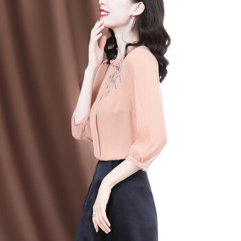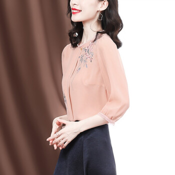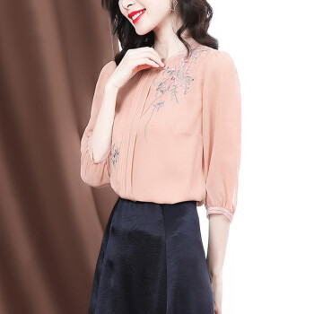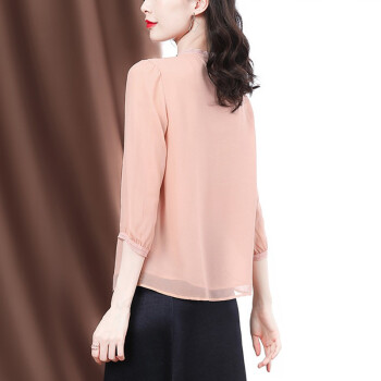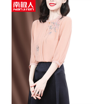 南极人 衬衫女2020夏季新款女装雪纺小衫韩版时尚气质印花设计感小衫衬衣七分袖圆领上衣潮 N4-GDB405-6756-粉色 M |