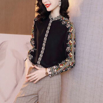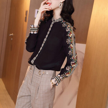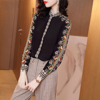 微尚瑶衬衫女2020秋季新款复古港风印花长袖衬衫女气质优雅设计感小众系扣开衫女上衣7008 黑色 请拍正确尺码 |