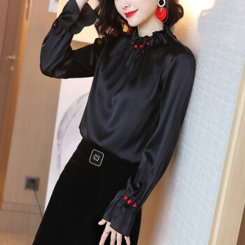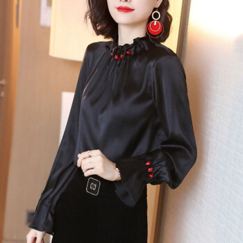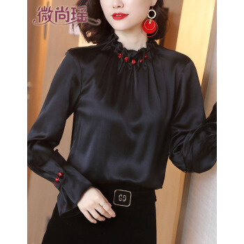 微尚瑶衬衫女2020秋季新款设计感小众立领钉珠宽松黑色上衣女时尚百搭气质长袖衬衣女6832 黑色 请拍正确尺码 |