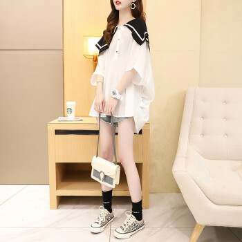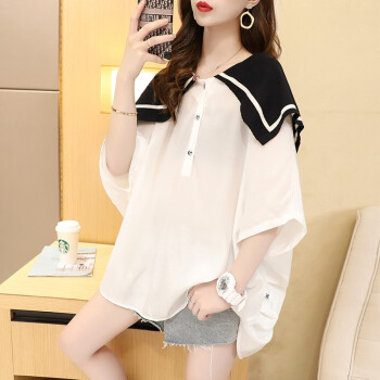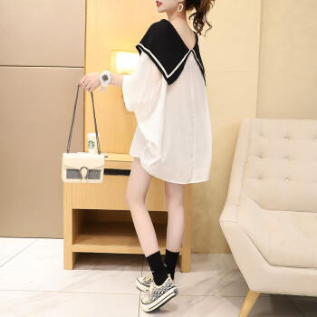 小赖猴娃娃领雪纺衬衫女中长款夏季2020新款韩版宽松大码洋气减龄上衣薄 白色 均码 |