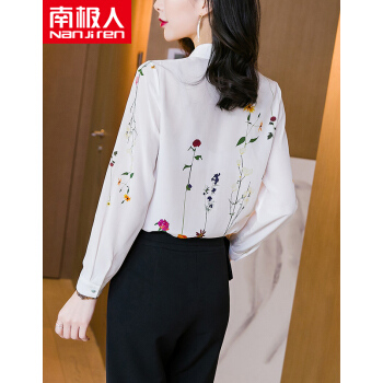 南极人 雪纺衬衫女长袖2020夏季新款时尚洋气女装雪纺小衫浪漫印花宽松小衫气质上衣潮 N4-NRA52-033-白色 M |