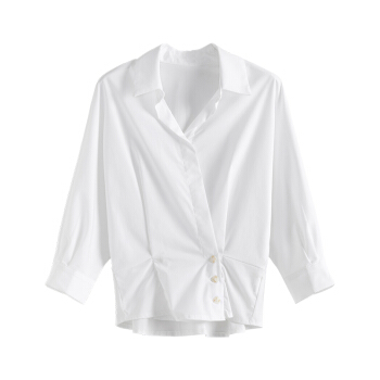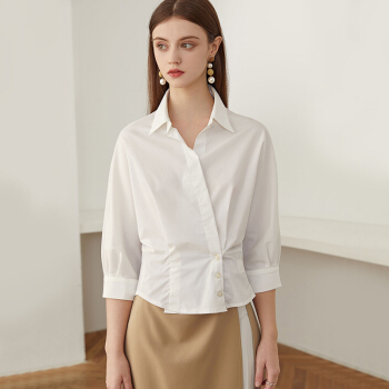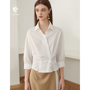 范思蓝恩 2020夏新款气质领上衣连袖衬衫女七分袖衬衣 白色 M |