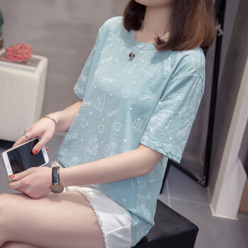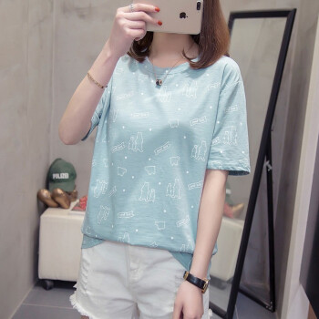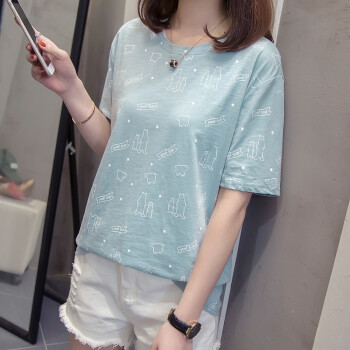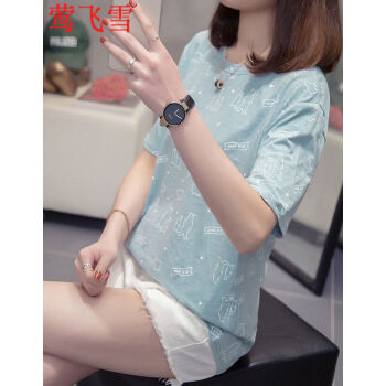 莺飞雪短袖t恤女2020夏季新款韩版宽松休闲学生大码女装显瘦百搭上衣打底衫女 浅蓝色8862 XXL(建议135-150斤) |