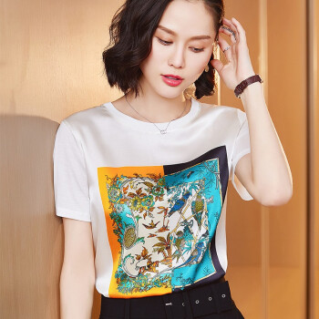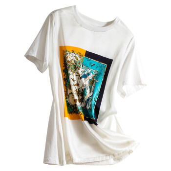 若玲珑短袖t恤女2020春夏新款女装印花韩版宽松上衣女学生白搭时尚衣服女大码女装夏 白色 M(建议95-105斤) |