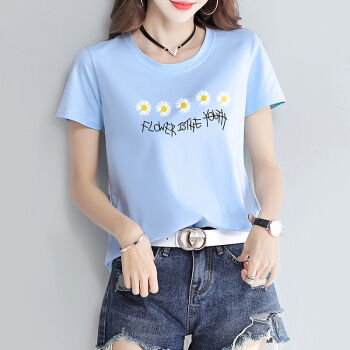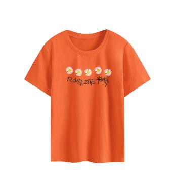 欧芙伦t恤女短袖2020新款宽松印花小雏菊简约时尚体恤上衣潮A0163 粉色 M |