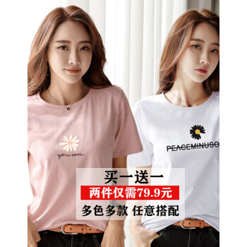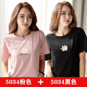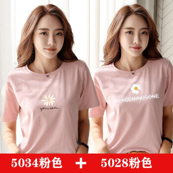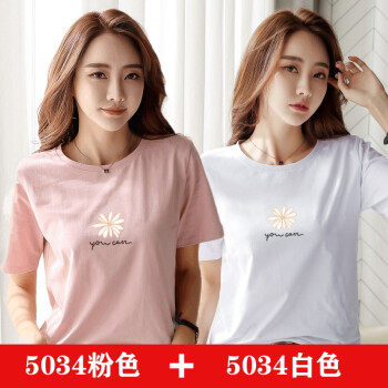 【两件装】知语者女装短袖t恤女小雏菊花T恤2020夏季新款上衣宽松版体恤纯棉圆领百搭上衣大码装 5034粉色+5028白色 L《105-115斤》 |