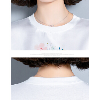 婪澈短袖T恤女2020女装夏季新款韩版时尚气质圆领印花衣服t恤女显瘦拼接上衣女 白色 请拍正确尺码 |