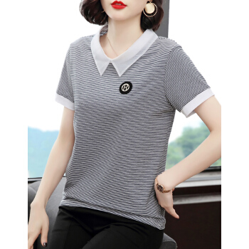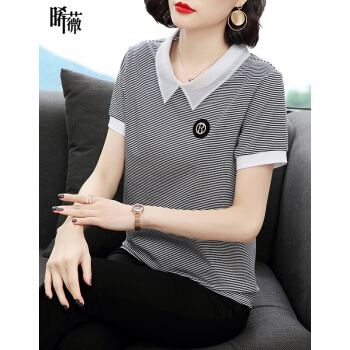 【精选好货】晞薇条纹T恤女短袖POLO领2020夏装新款中年妈妈体恤棉上衣宽松百搭打底衫夏 白色 M |