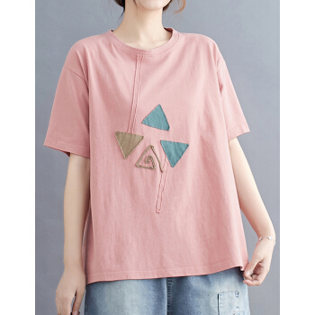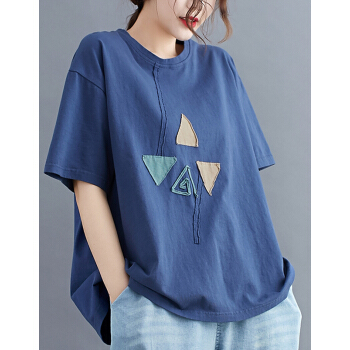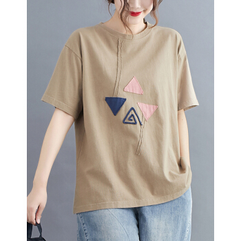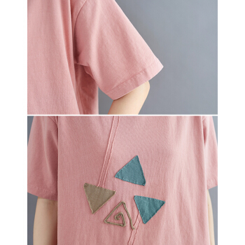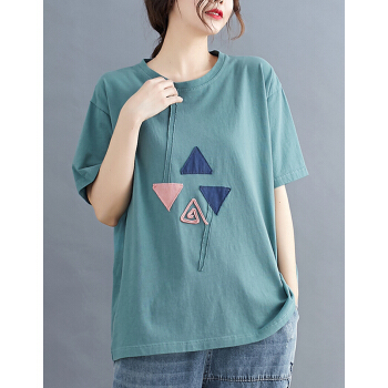 婪澈T恤女2020女装夏季新款宽松短袖女上衣休闲百搭撞色贴布文艺女t恤衣服女 绿色 请拍正确尺码 |