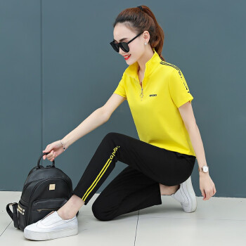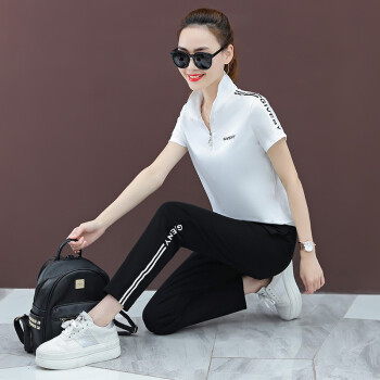 麦潮尚短袖T恤女运动套装女夏季2020新款立领宽松运动服短袖休闲两件套 红色 S建议70斤内 |