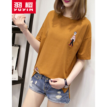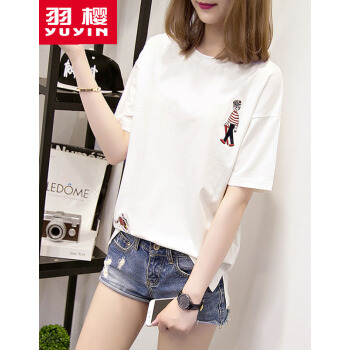 羽樱 短袖t恤女2020夏装新款大码女装宽松韩版学生棉T恤半袖上衣服女 7338 白色 L |
