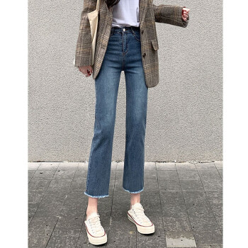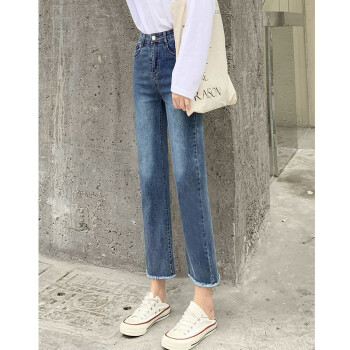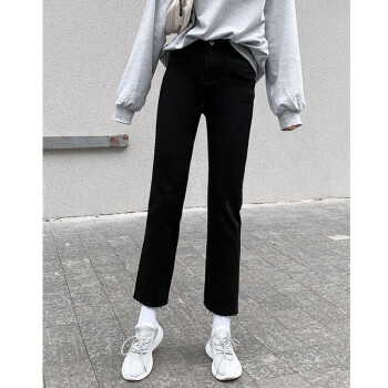 【精选好货】Hizze直筒牛仔裤女2020年新款夏季薄款时尚高腰显瘦黑色女裤学生宽松百搭九分库 经典黑-直筒毛边 请拍正确尺码 |