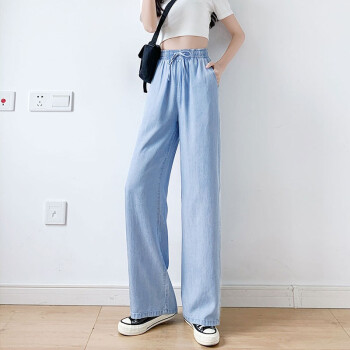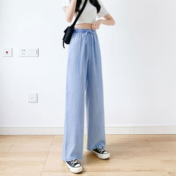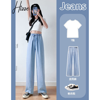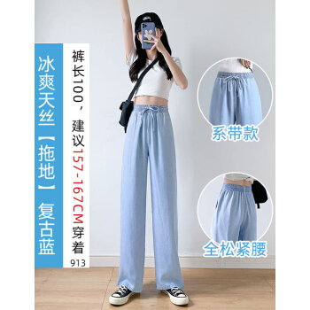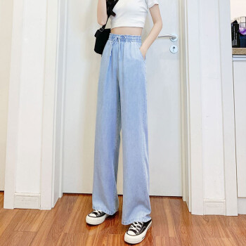 【精选女裤】Hizze天丝牛仔阔腿裤女裤2020年夏季新款薄款高腰垂感直筒长裤韩版宽松显瘦百搭 复古蓝【拖地裤】 请拍正确尺码 |