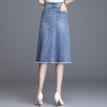 欧偲麦 牛仔半身裙女夏2020新款高腰显瘦a字中长款过膝包臀一步裙薄款 2022 牛仔 L/21 |