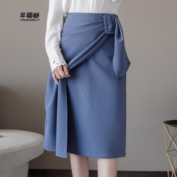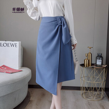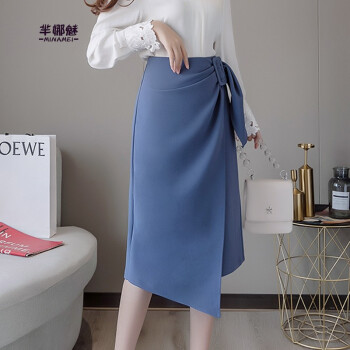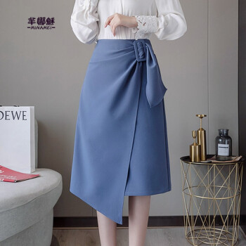 芈娜魅不规则半身裙女中长款2020夏新款学生高腰显瘦包臀裙时尚百搭开叉一步裙子 图片色 XL |