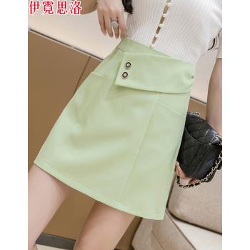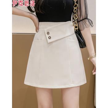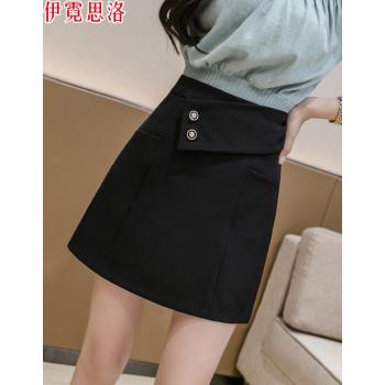 伊霓思洛半身裙女2020夏季高腰新款短裙子韩版A字裙时尚女装显瘦职业裤裙 黑色 M |