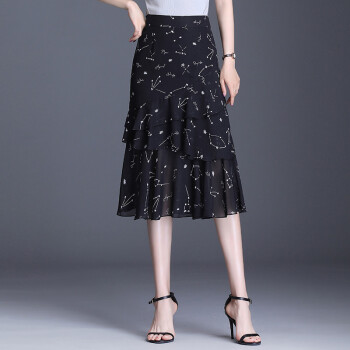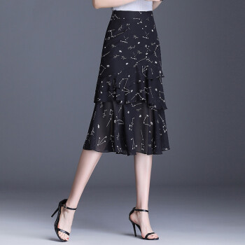 欧偲麦 a字裙半身裙夏季女士雪纺鱼尾裙中长款百褶裙子2020新款高腰蛋糕 9722 花色 XL/29 |