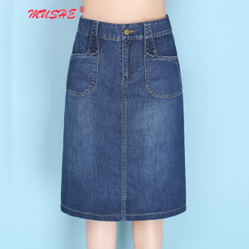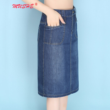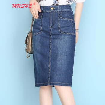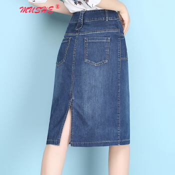 MUSHE原创轻奢 牛仔半身裙女2020夏季新款时尚百搭高腰显瘦简约舒适开叉中长款一步包臀裙 蓝色 L |