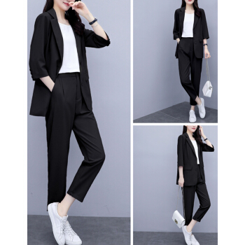 婪澈休闲裤女2020年女装夏新款西装套装女韩版显瘦职业西服女时尚气质洋气职业两件套套装女 粉色 请拍正确尺码 |
