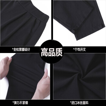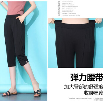 昱樱冰丝休闲裤女2020夏季新款学生哈伦裤宽松薄款显瘦直筒中裤胖MM裤子黑色大码女装七分萝卜裤女潮 黑色(9966开叉) 此码勿拍.请拍自身对应码数 |