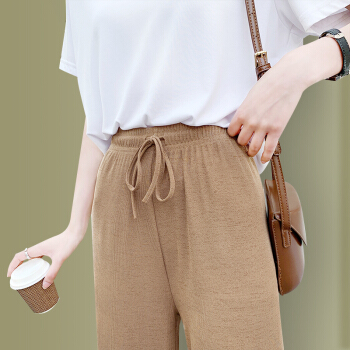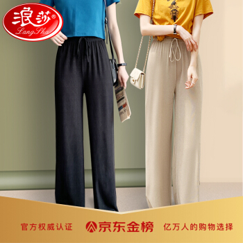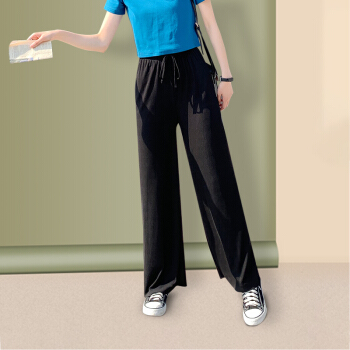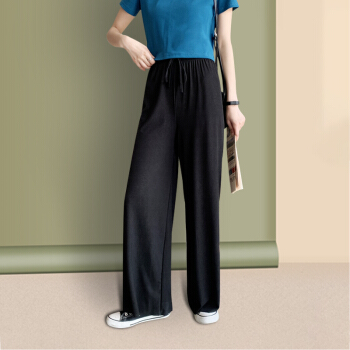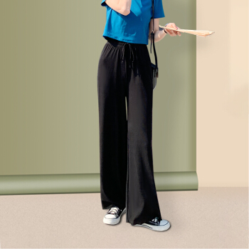 浪莎休闲裤女夏季通勤薄款高腰裤子冰丝阔腿裤垂感宽松直筒女裤 黑色 标准码(80-150斤可穿) |