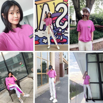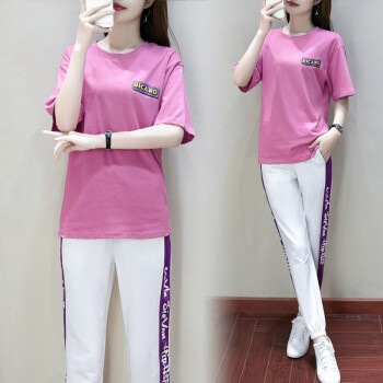 昱樱休闲裤女运动套装女2020春夏季新款时尚网红韩版宽松短袖t恤长裤子学生休闲两件套大码女装卫衣女潮 紫色+白裤 此码勿拍.请拍自身对应码数 |