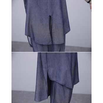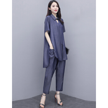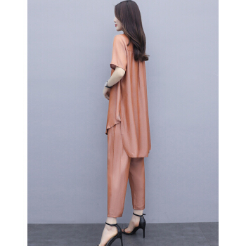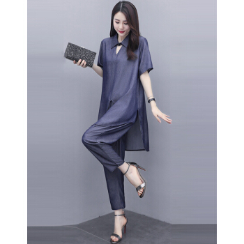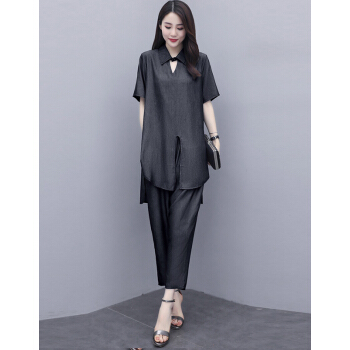 婪澈休闲裤女时尚妈妈装两件套2020年女装夏季新款洋气大码宽松中年人成熟套装女 黑灰色 请拍正确尺码 |