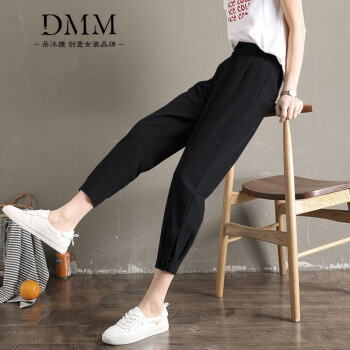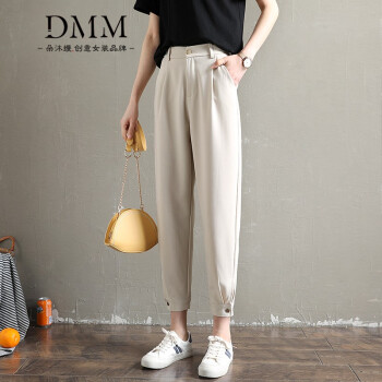 朵沐缦 束脚休闲裤女高腰显瘦2020夏季薄款哈伦裤时尚韩版百搭西装裤直筒宽松九分萝卜裤潮 1680-1薄款 灰色 L |